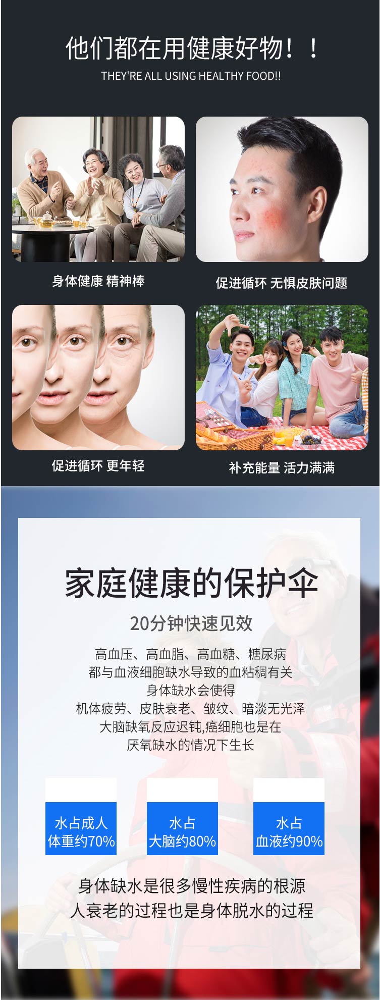 细胞能量仪多种功效※改善血粘稠,减少心、脑血管疾病发生的机率※直线型结构的水,增强至关重要的细胞通信和交流,促进强大的抗氧化作用※增加细胞含氧量,协助改善细胞功能※促进肠道菌群的健康指数,增强免疫力及身体解毒功能※强大的杀菌作用,抑制有害细菌和病毒※调整人体pH值趋于平衡※最佳运动饮用水※提高酒的香醇度,改善酸性果汁的口感,咖啡和茶更芳香,米饭更柔软好吃※相容的频率和能量,让我们的食物、营养品、药物在体内更加有效的吸收※让动物更加健康,让植物生长更加茂盛鲜艳※减小癌症发生的机率