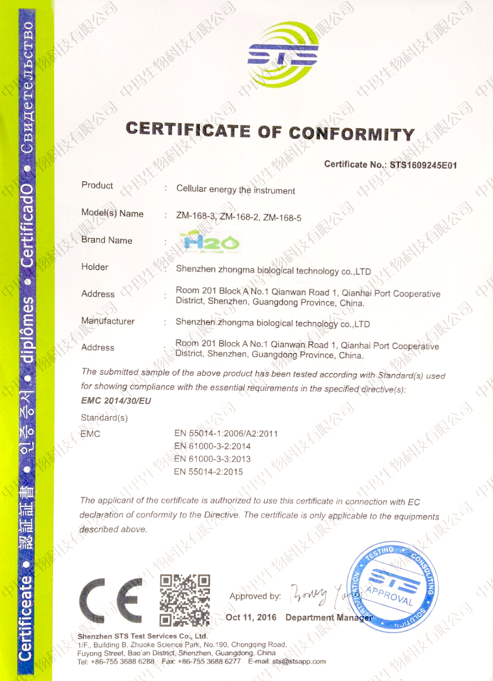 深圳中玛生物科技有限公司,成立于广东省深圳市,专注于人类健康产业。公司始终坚持“承载生命重托,奉献大爱无疆”的企业理念,对接国际企业标准,深圳市中玛生物科技有限公司,专注于水健康,拥有国内最先进的低频共振仪饮水机、富氢水杯、细胞能量仪饮水机等产品,以及各种不同款式的低频共振仪水机产品。